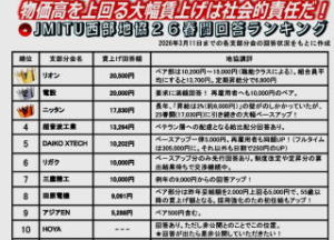 JMITUの各支部では、一斉回答を受けた中、統一朝ビラ宣伝などが取り組まれ、前年を上回る回答、2万円を超える支部も出現しています。西部一般でも、困難な運送分会のキユーソーティス分会が1万円引き出すなど、前進していま